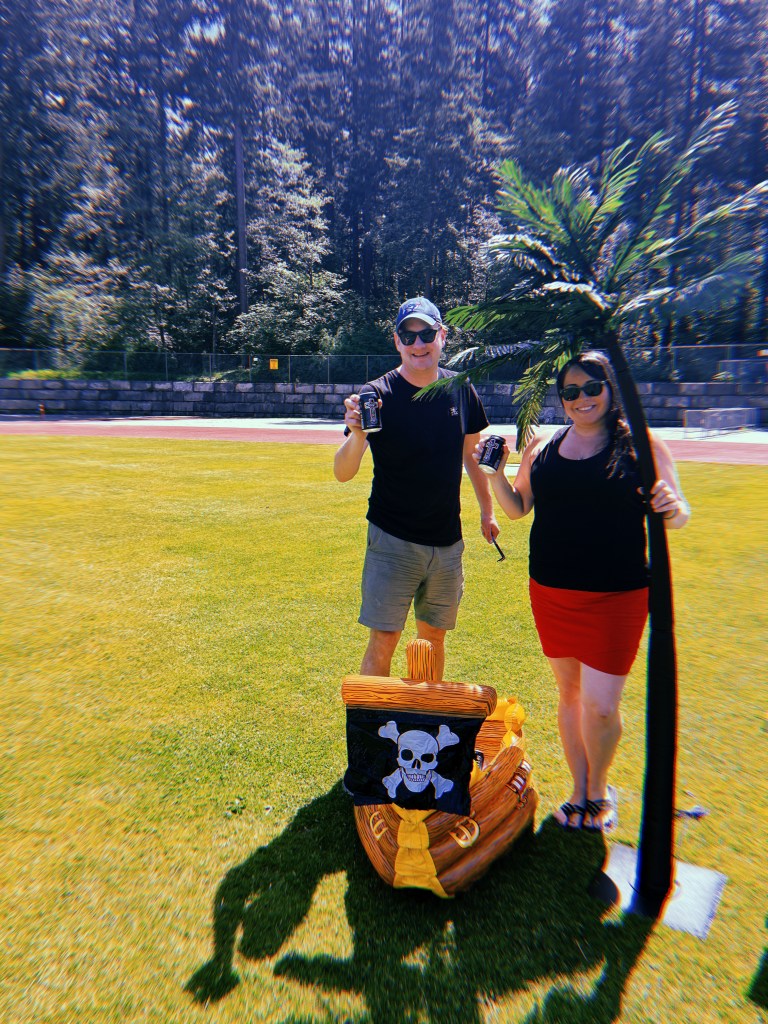 For the Swanguardians, there are the usual set-up procedures; haul over the fencing and bleachers for the supporters section, put out the banners, flags, and drums. But today there was some special pirate-themed features to bring to life… An inflatable kiddy-pool ship complete with a Jolly Roger, which was understandably commandeered for drink-chilling purposes. A palm tree, to provide those desert island vibes, and a parrot, dubbed Wee Willie in honour of Rovers’ own club legend Will Cromack, co-founder, owner, coach, and GM. It was he that coined the “pirates” nickname for us supporters, a nod to Rovers’ daring journey into the uncharted waters of fan ownership, local player development, and a supporter-first mindset. The Swanguardians have run with the nickname, establishing a culture of daring innovation. History tells of another nautical connection; Central Park, before becoming a pristine piece of parkland, was at one time used for the production of masts and spars for ships of the Royal Navy. Perhaps some pirate ancestors of yesteryear once plucked a couple of masts for there own rogue vessels? We’ll never know, but it’s certainly enough to paint a beautiful picture, one that adds deeper meaning to our regular singing of Willie’s Privateers, a Swanguardian version of Stan Rogers’ sea shanty, “Barrett’s Privateers.” Back in the time of ocean warfare, the British ruling power worried that their so-called privateers – royal subjects granted a limited and temporary license to shoot and pillage – might become swayed by the brute but exciting lifestyle and then turn to pirating full time. One can dream, then, of newly-minted pirates roaming the woods of what is now Central Park, looking for a key part of their new seafaring life. We certainly carry on this (likely made-up) legacy, championing an independent, DIY spirit each matchday. It’s a pirate’s life for we!