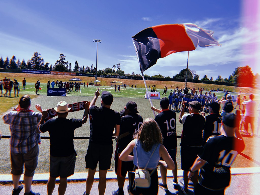 The Rovers women were entrenched in another gritty match. One of our Pirate players broke a tooth clean in half. Hard tackles, turf burn. They battled it out as always. But this time Hannesson’s heroes would get their reward, and in dramatic fashion, scoring in the 86th minute. An attacking pass into the box set forward Kyara Armenta free and after two quick touches she slid one past their keeper into the bottom left of the net. 2-1 Rovers. They would see it out, picking up three huge points and fulfilling their end of the bargain in the hunt for a double-win day. Red smoke for victory. The wind had its way in the end, quickly wafting it from field to stand despite our best efforts. Same result, smoke in the seats… whoopsie.